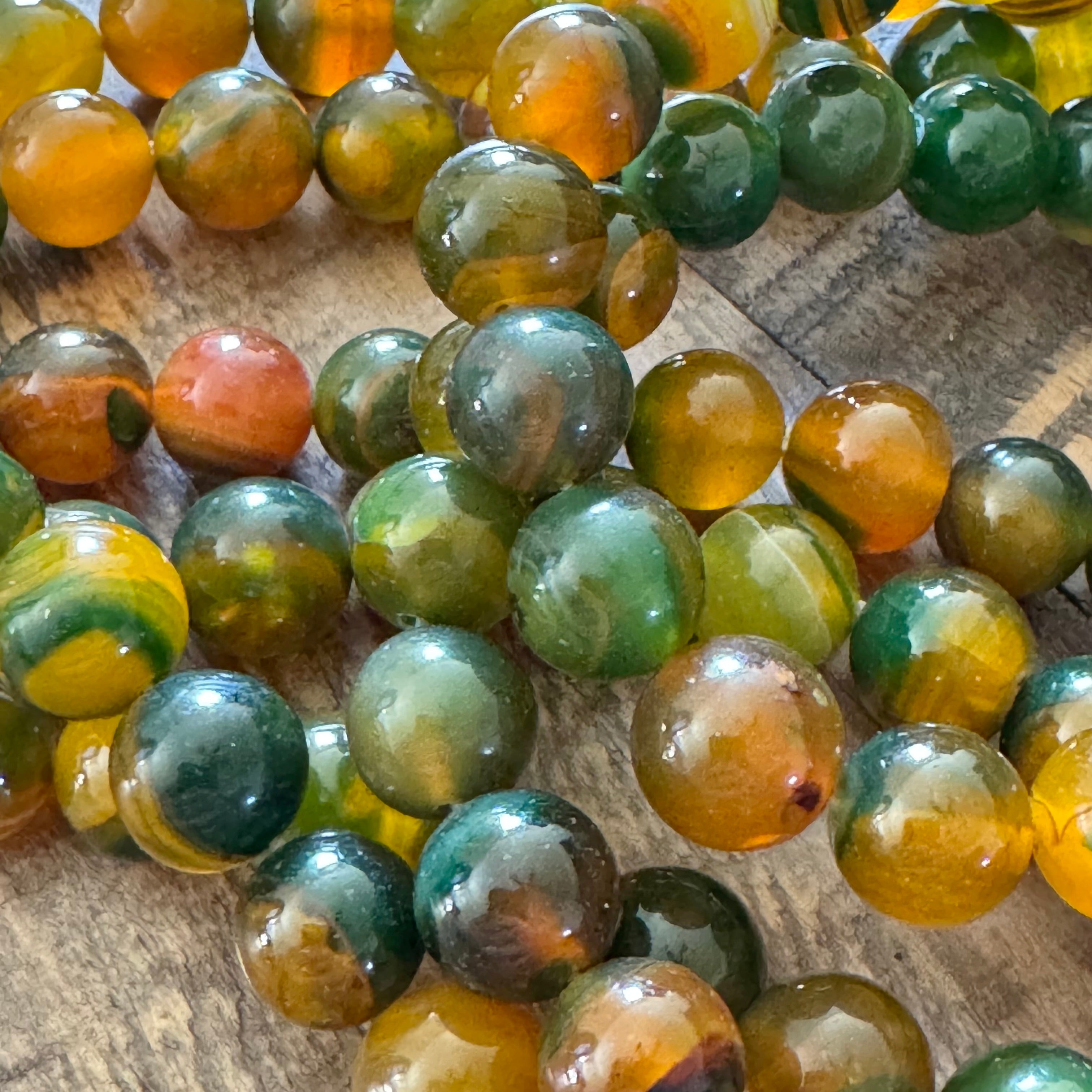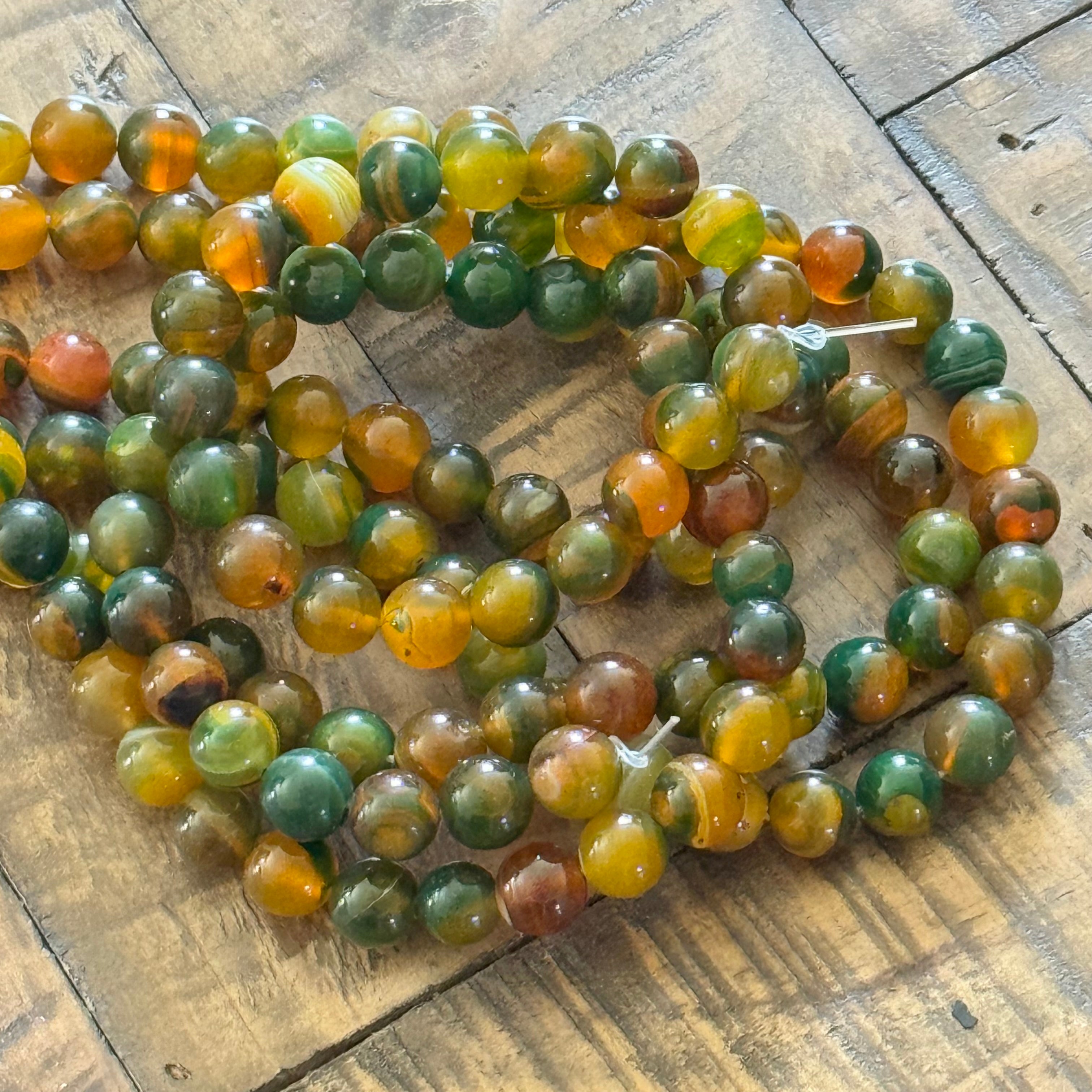 Natural Striped Agate/Banded Agate Round Bead Strands, Dyed, Yellow Green