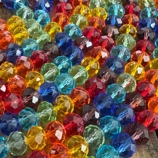 4mm Faceted Rondelle Transparent Glass Beads - Mixed Colors