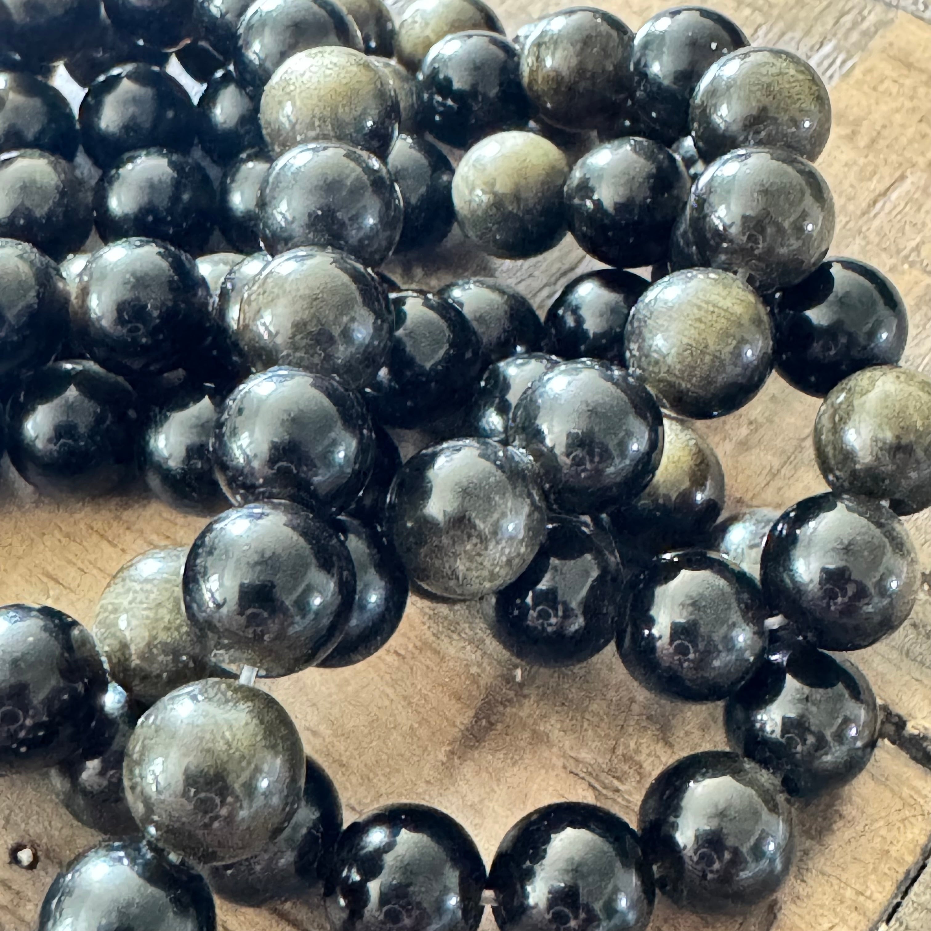 Grade AA Black Gold Sheen Obsidian Bead Strand - 6mm - 8mm