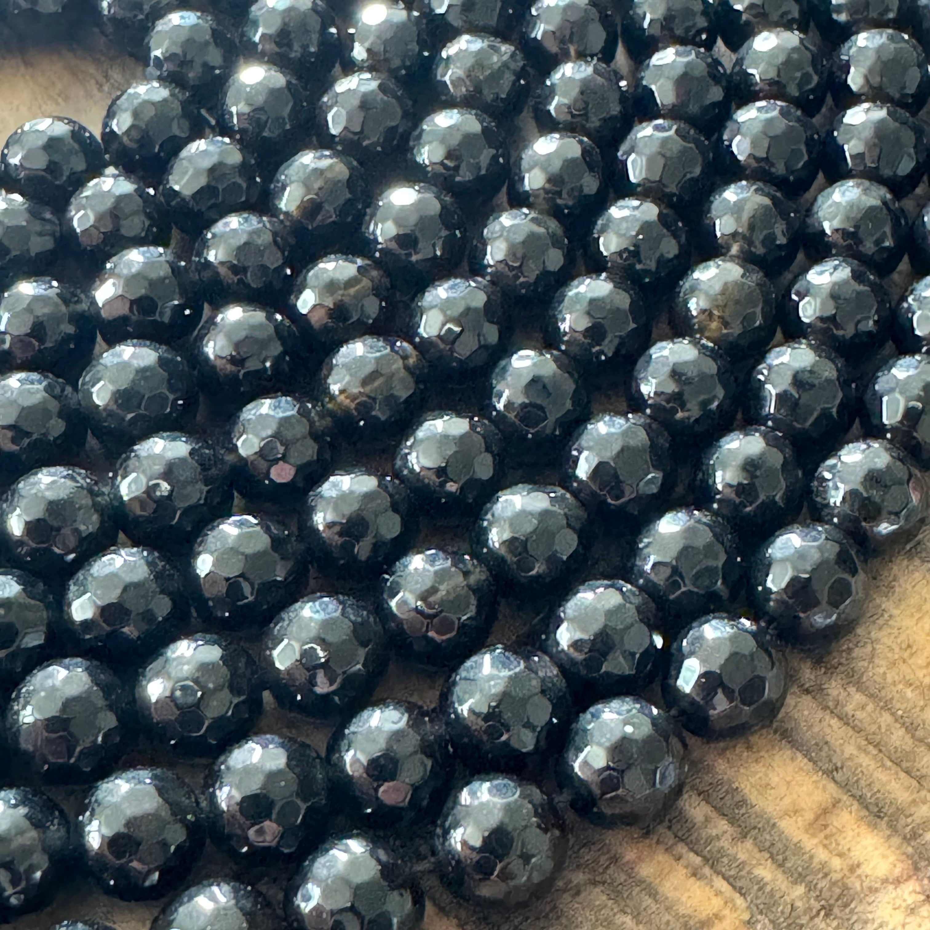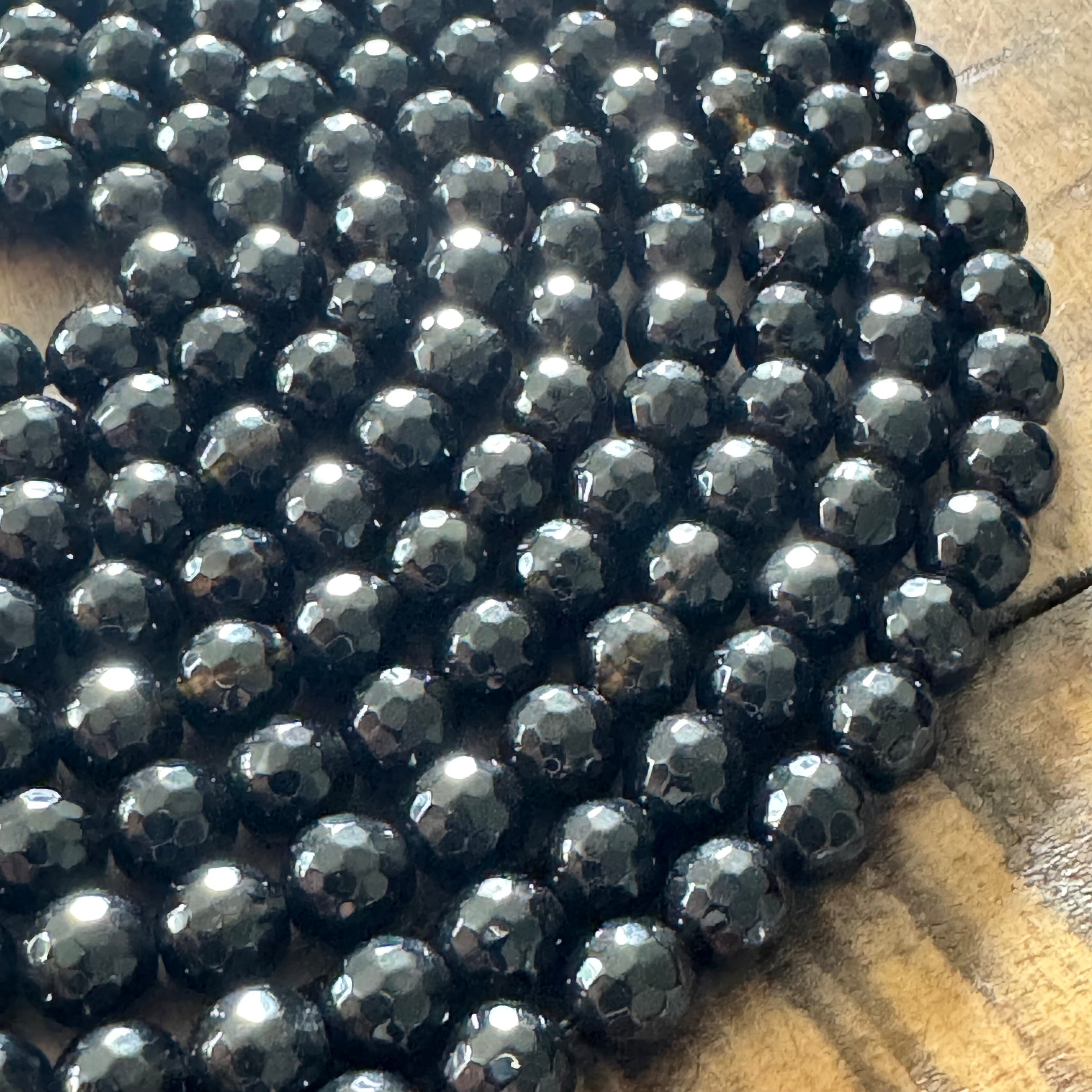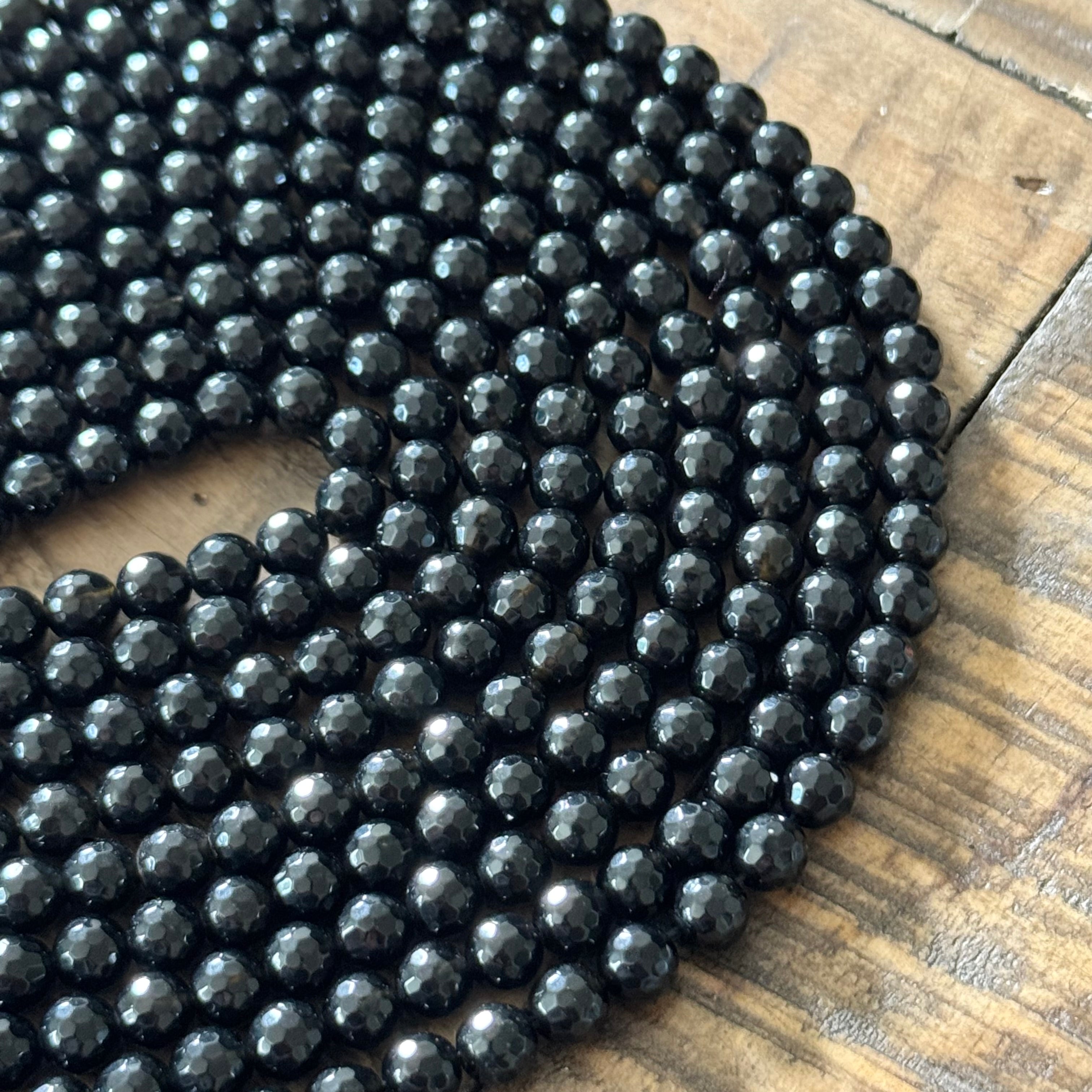 Natural Obsidian Beads Strands, Faceted, Round, Black