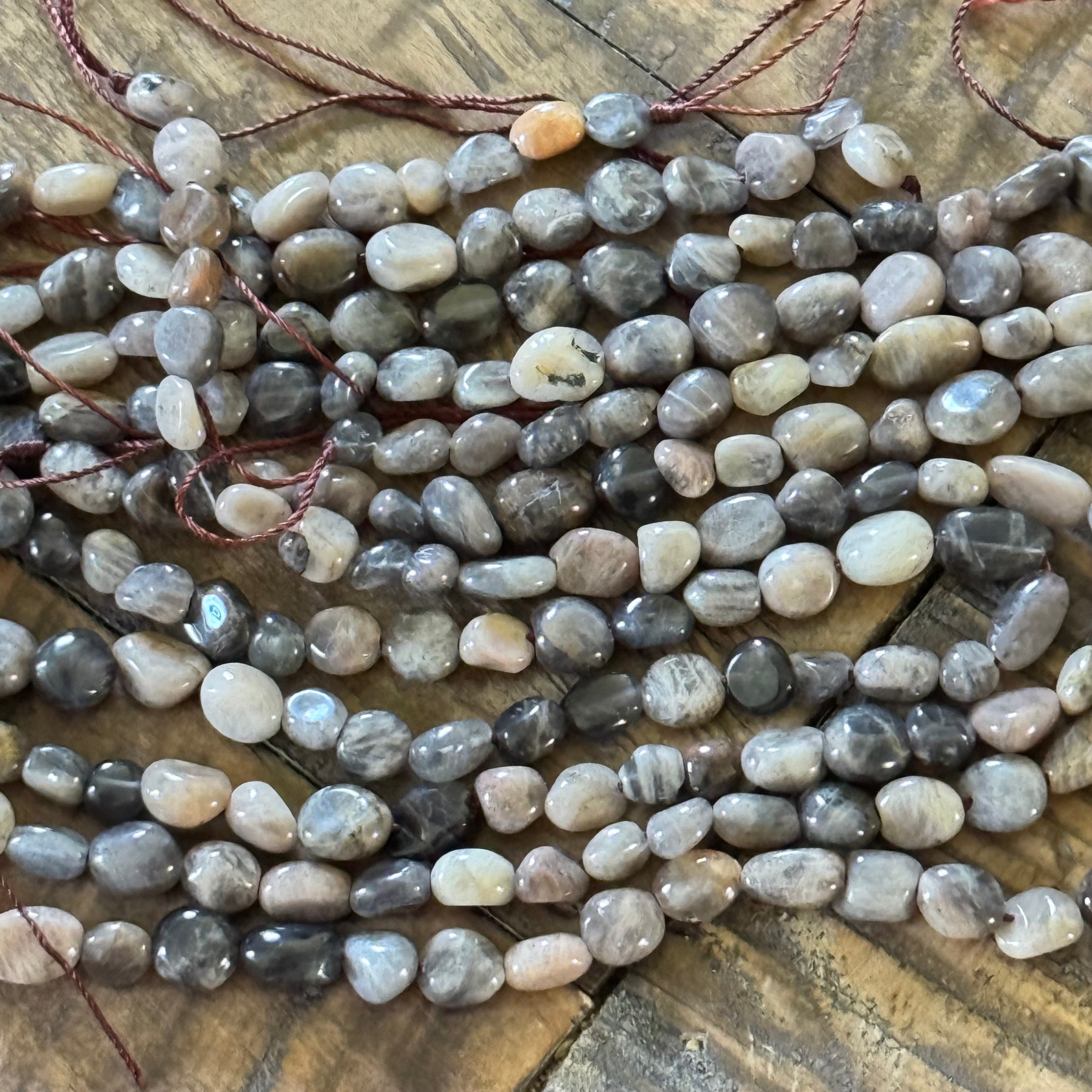 Black Sunstone Tumbled Stone Bead Strand - 5-8mm