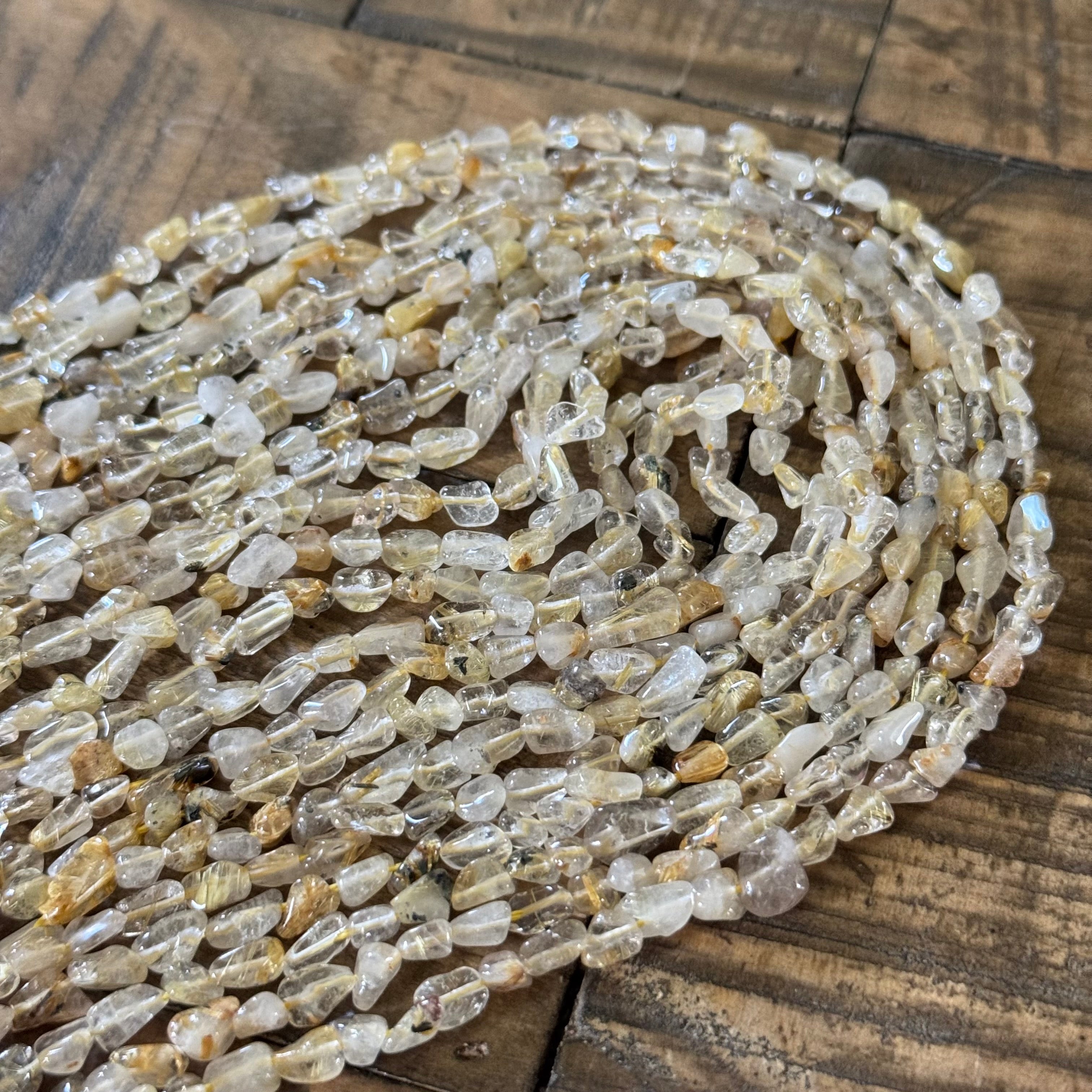 Gold Rutilated Quartz Nugget Bead Strand - 5-9mm